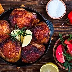 Baked Chicken in white wine with tomato, chorizo, fennel & cannellini beans, lightly wood smoked